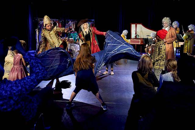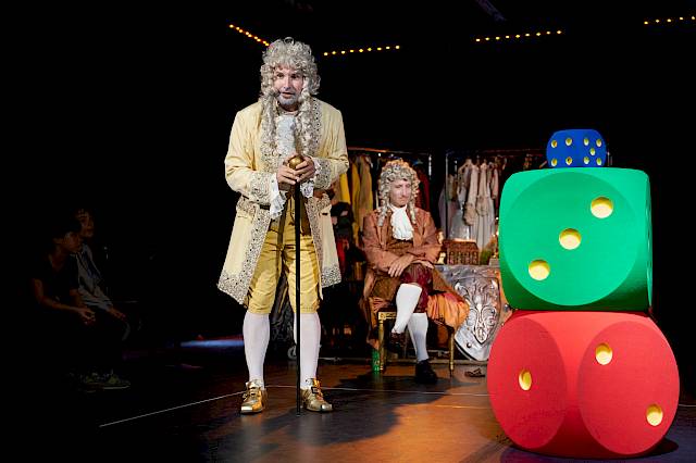 Drei Würfel bestimmen in dieser interaktiven Geschichten-Werkstatt, welche Figuren, Orte und Requisiten im gemeinsam zu entwickelnden Stück eine zentrale Rolle spielen. Ein einzigartiges Musiktheatererlebnis, das aus der Kreativität des Augenblicks entsteht.