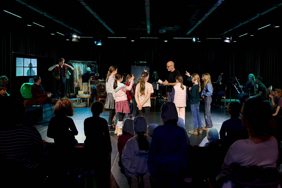 In dieser Geschichten-Werkstatt wird improvisiert. Begleitet durch Profis und gemeinsam mit dem Publikum erfindet Christoph Betulius Geschichten. Figuren, Kostüme und Requisiten werden erwürfelt, und dann wird fröhlich fantasiert und aus dem Stegreif gespielt. Ein Format, das Musiktheater mit viel Spass aus dem Moment heraus entwickelt.