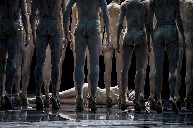 In Sacre-Aufführungen mit ihren sehr archaischen Bildern realisiert man eigentlich immer, dass wir nicht so fern von den heidnischen Riten, den blutigen Ritualen aus der vermeintlich grauen Vorzeit sind. Sie liegt näher, als uns lieb ist. Am Beginn meiner Beschäftigung mit dem Frühlingsopfer gab es zwar einige Ideen, Sacre mehr im Heute zu verankern. Doch wenn man einmal anfängt, sich zu dieser Musik zu bewegen und versucht, eine bestimmte Essenz herauszufiltern, eliminiert sich jede überflüssige Information fast von selbst. Man kommt auf das Einfachste und Ursprünglichste zurück. Also kein Platz für ölverschmierte Möwen! Die Kraft der Musik, aber auch die tänzerische und darstellerische Stärke meiner Tänzerinnen und Tänzer hat mir geholfen, mich von überflüssigem Ballast zu befreien.